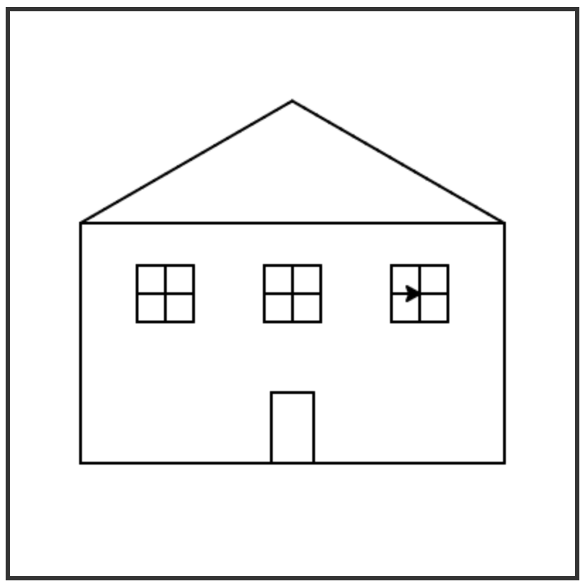 Using your rectangle function and any other functions written during class or that you want to write to help you, create a Python program to draw a house with the turtle. A basic example is shown below, but feel free to embellish yours as much as you want.