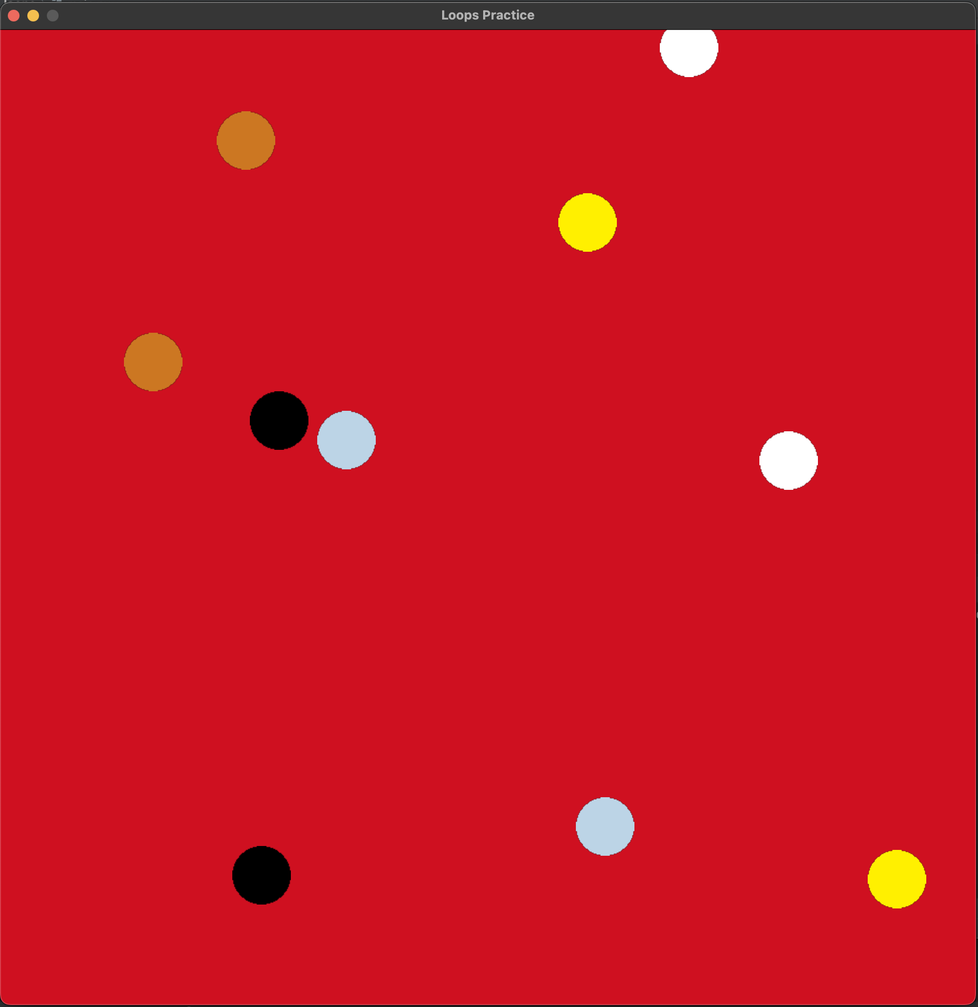 The given starter code creates the list for you, handles drawing the shapes, and switches between the patterns based on key presses. Comments in the given code give more information about the patterns to create.