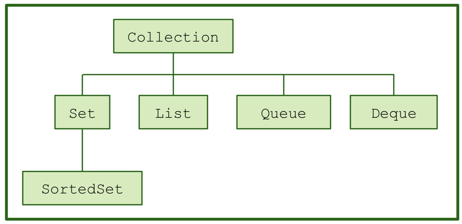 Maps excluded)? What methods are common to all Deques?LinkedList)? What is the purpose of each interface?Set)? Do you think the number justifies it being an interface or not?PriorityQueue)? What do you think is the purpose of each inheritance "level"?Collections) instead of adding that functionality to specific collection types themselves (such as List)?